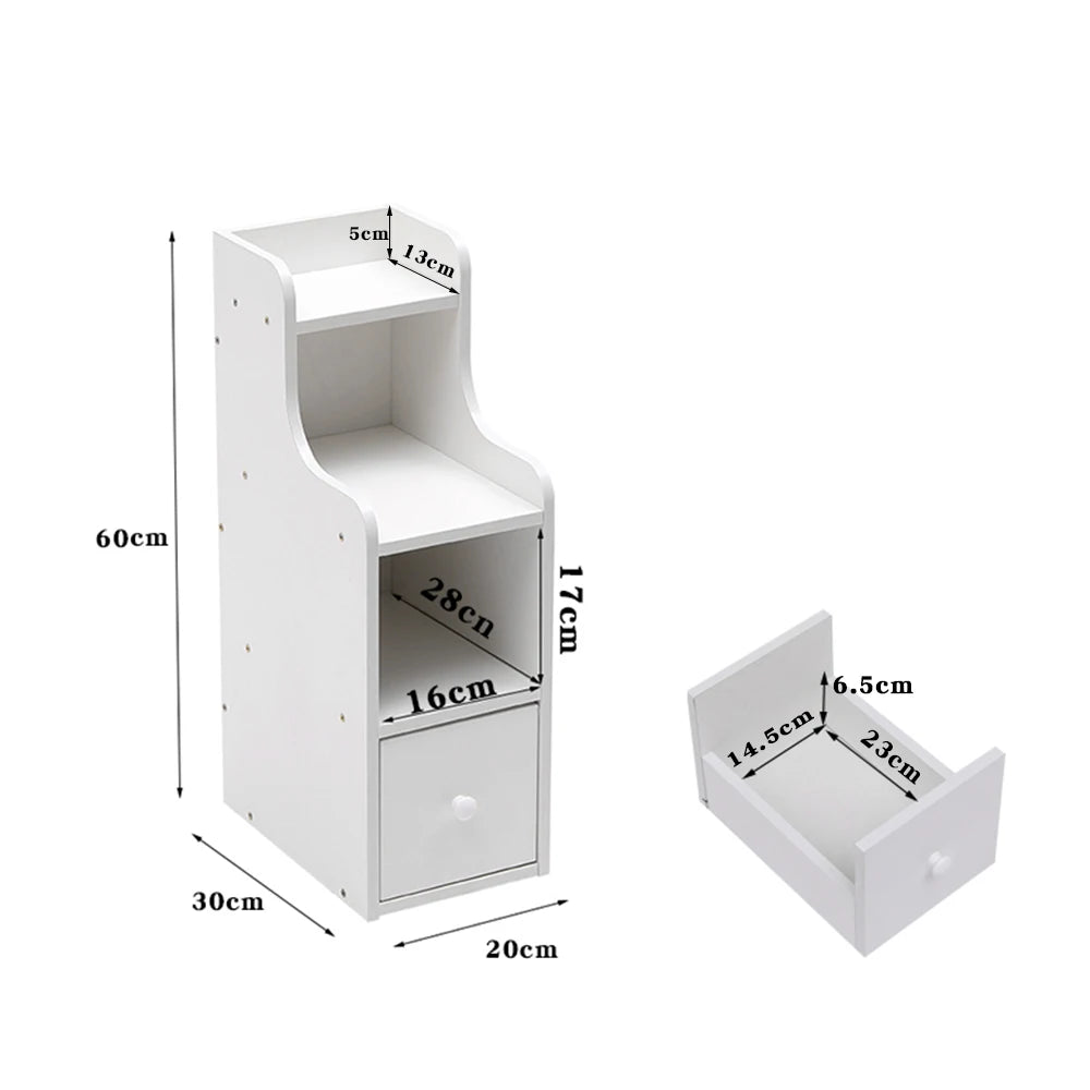 Crafted from durable MDF wood, this narrow bedside table is sturdy, easy to clean, and lightweight enough to reposition when needed. Whether used as a bedside nightstand, slim end table, or sofa side cabinet, it keeps your space organized while maintaining a clutter-free, airy look.