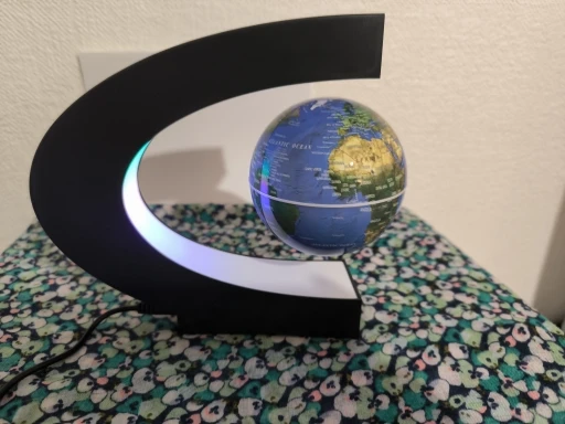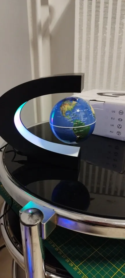 Powered by an electronically controlled magnetic levitation system, the globe hovers above its C-shaped base, creating a mesmerizing visual effect. The built-in colorful LED lighting illuminates the globe beautifully in the dark, making it both a functional ambient light and a striking decorative centerpiece.