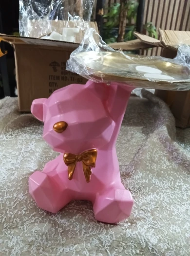 Add a touch of charm and modern aesthetics to your interior with the Kawaii Geometric Bear Tray with Butterfly Design — a stylish decorative figure and functional storage tray in one. This unique bear-shaped sculpture features a trendy geometric design and an elegant tray on top, perfect for storing jewelry, watches, cosmetics, candies, keys, and other small essentials. Its cute yet modern look makes it an eye-catching accent for your living room, bedroom, dressing table, or office desk. Inspired by kawaii and Nordic decor trends, this bear tray combines art and practicality. Made from durable eco-friendly material, it is lightweight, stable, and easy to clean, making it ideal for everyday use and decorative purposes. Whether you’re looking for a stylish home accessory, a creative organizer, or a unique gift, this geometric bear tray is a perfect choice.