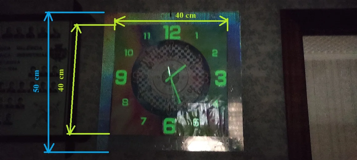 also a 50 cm glow stick. Below there is a 50 by 50 cm cardboard 2 cm from the wall and so on.